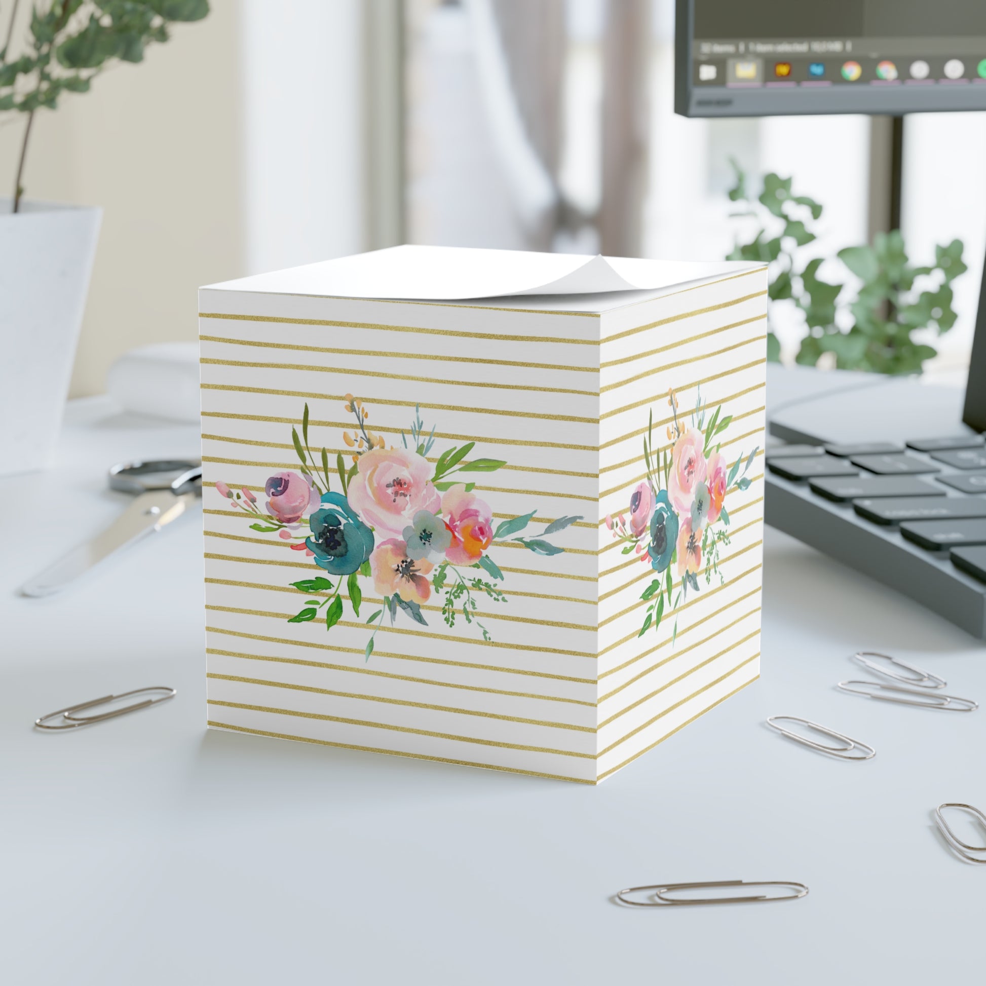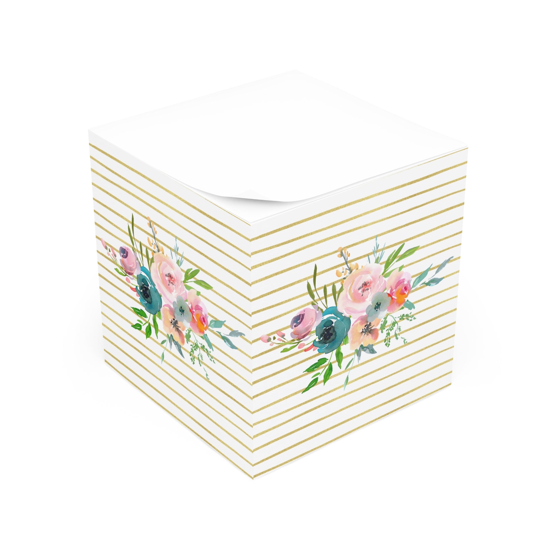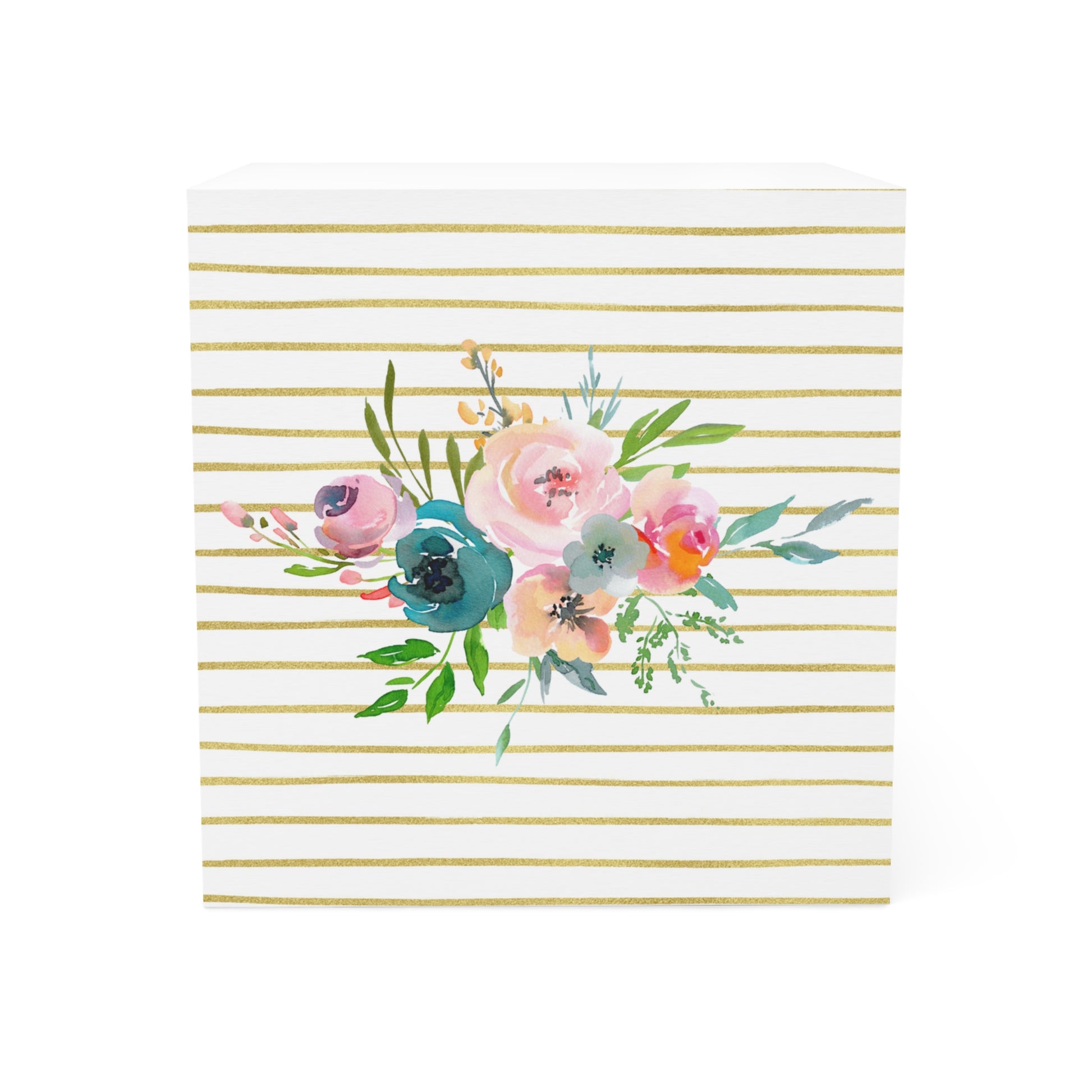 Light Floral Bouquet Gold Stripe Note Cube