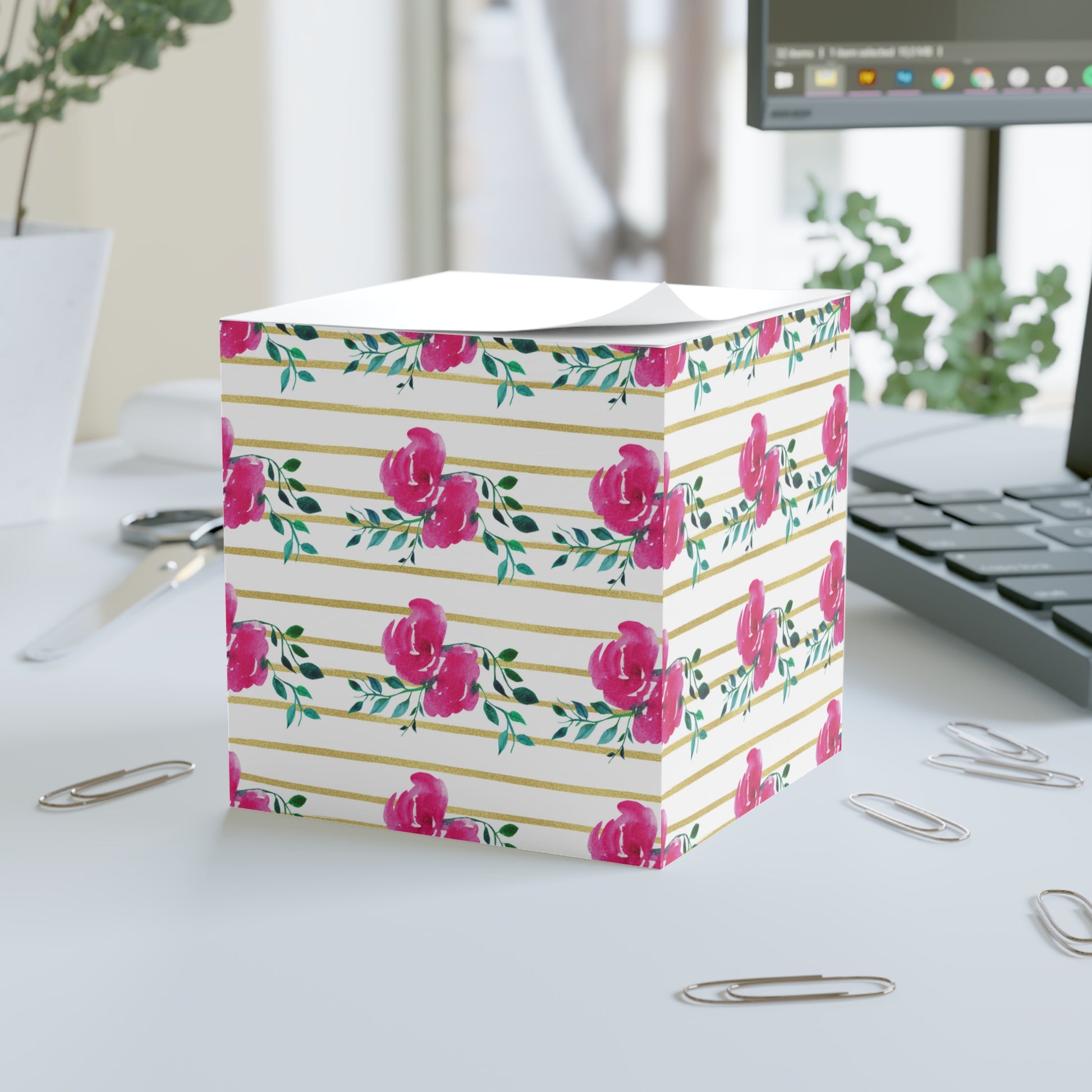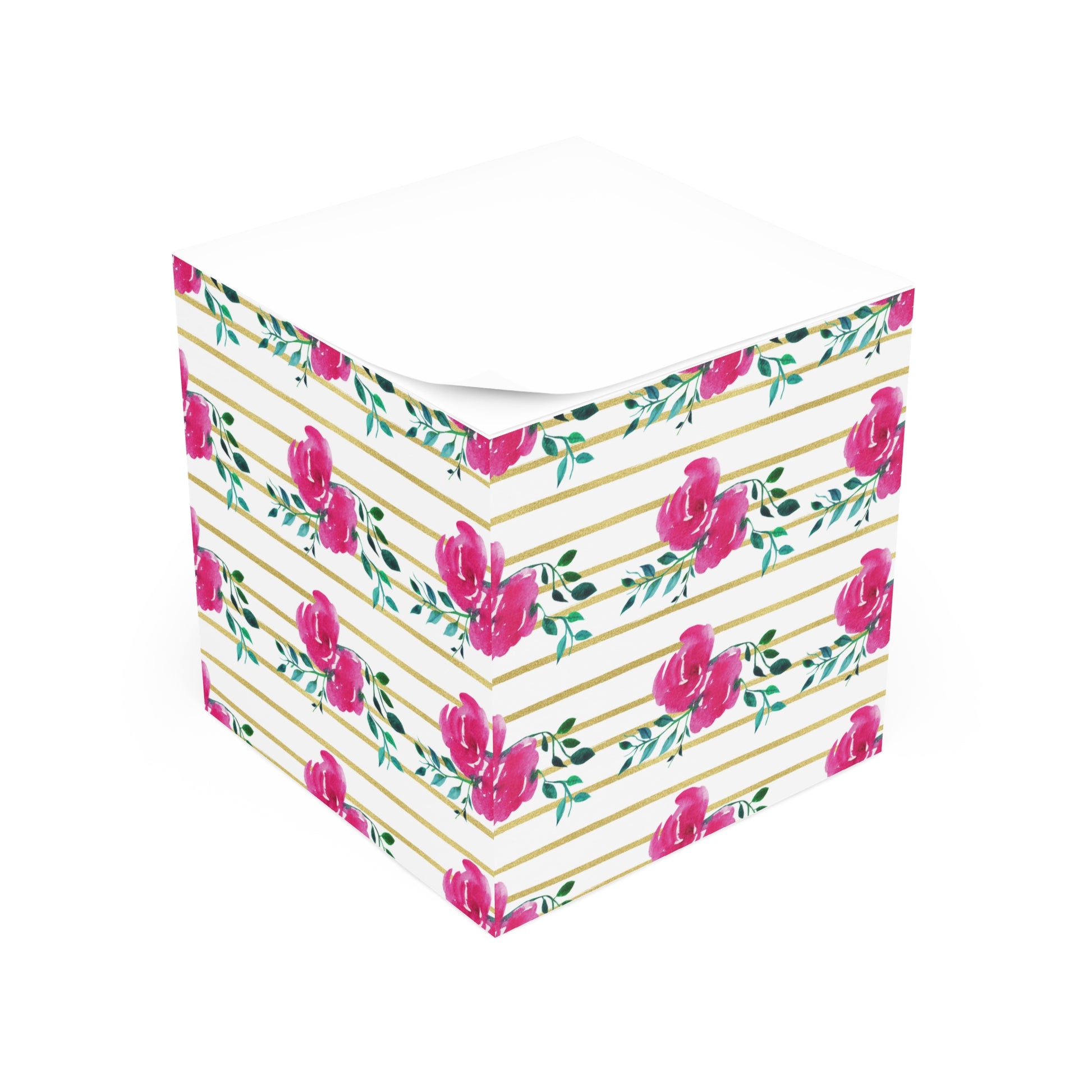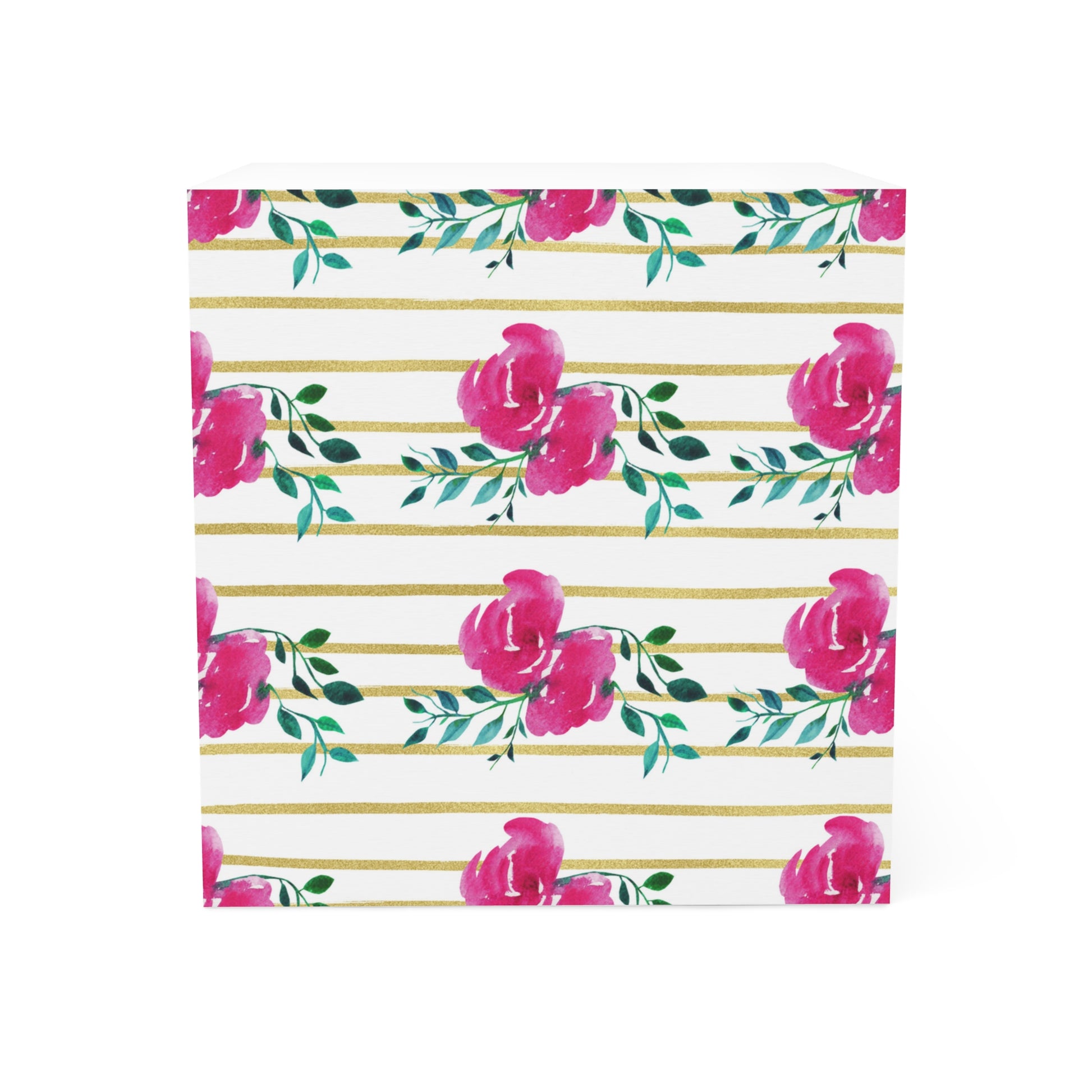 Pink Floral Gold Striped Note Cube